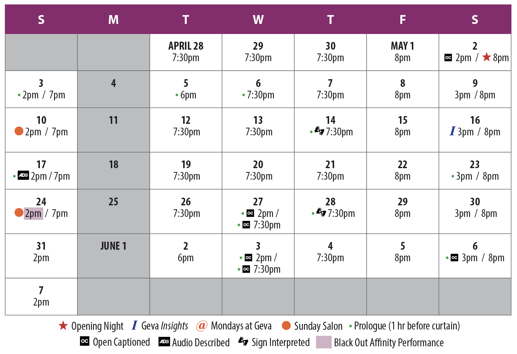 Open Captioned: Saturday 5/2 – 2:00pm, Wednesday 5/27 – 2:00pm, Wednesday 5/27 – 7:30pm, Wednesday, 6/3 – 2:00pm, Wednesday, 6/3 – 7:30pm, Saturday 6/6 – 3:00pm